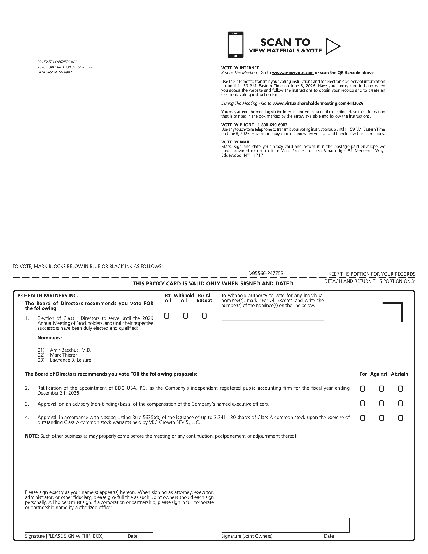 The Company is asking stockholders to approve the issuance of up to 3,341,130 shares of Class A common stock upon the exercise of outstanding Class A common stock warrants held by VBC Growth SPV 5, LLC (“VBC 5”), for purposes of Nasdaq Listing Rule 5635(d), as described in more detail below.