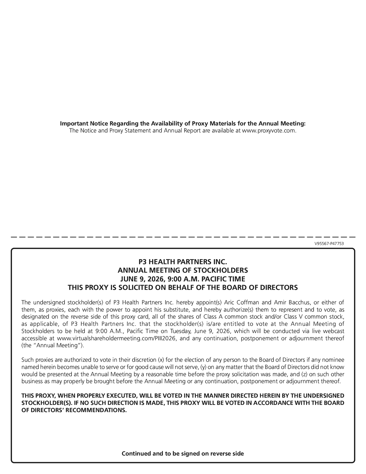 On May 29, 2025, P3 Health Group, LLC (“P3 LLC”), our subsidiary, entered into a financing transaction with VBC 5, consisting of an unsecured promissory note (the “Promissory Note”) and the VBC 5 Warrants (as defined below) to purchase up to 3,341,130 shares of Class A Common Stock (the “May 2025 Financing”). VBC 5 is a Delaware limited liability company managed by Chicago Pacific Founders GP III, L.P. (“CPF GP III”), an affiliate of the principal stockholder of the Company. The entry into the Promissory Note and the issuance of the VBC 5 Warrants was approved by a committee of independent, disinterested directors of the Company.