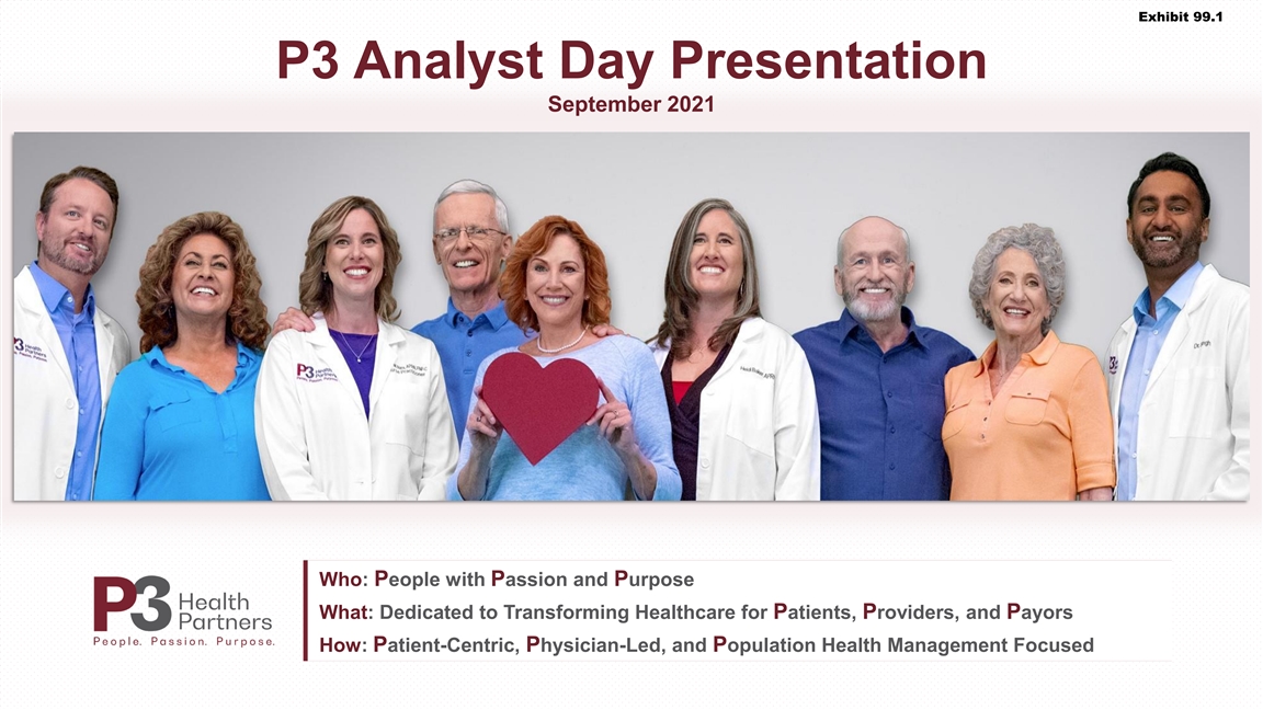Exhibit 99.1 P3 Analyst Day Presentation September 2021 Who: People with Passion and Purpose What: Dedicated to Transforming Healthcare for Patients, Providers, and Payors How: Patient-Centric, Physician-Led, and Population Health Management FocusedExhibit 99.1 P3 Analyst Day Presentation September 2021 Who: People with Passion and Purpose What: Dedicated to Transforming Healthcare for Patients, Providers, and Payors How: Patient-Centric, Physician-Led, and Population Health Management Focused
